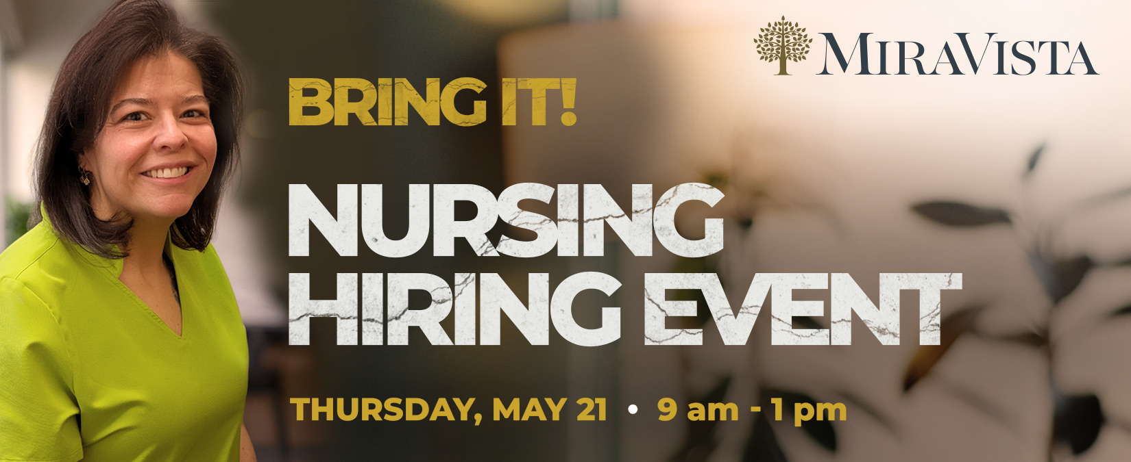 Join us for our upcoming hiring event on May 21 and take the next step in your healthcare career. We’re hiring full-time, part-time and per diem RNs and LPNs. Whether you’re experienced or looking for your next opportunity, we’re excited to meet you.